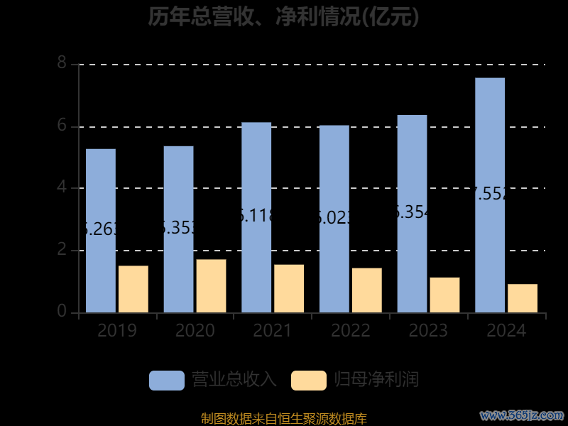 数据显示,2024年公司加权平均净资产收益率为5.44%,较上年同期下降1.56个百分点。
