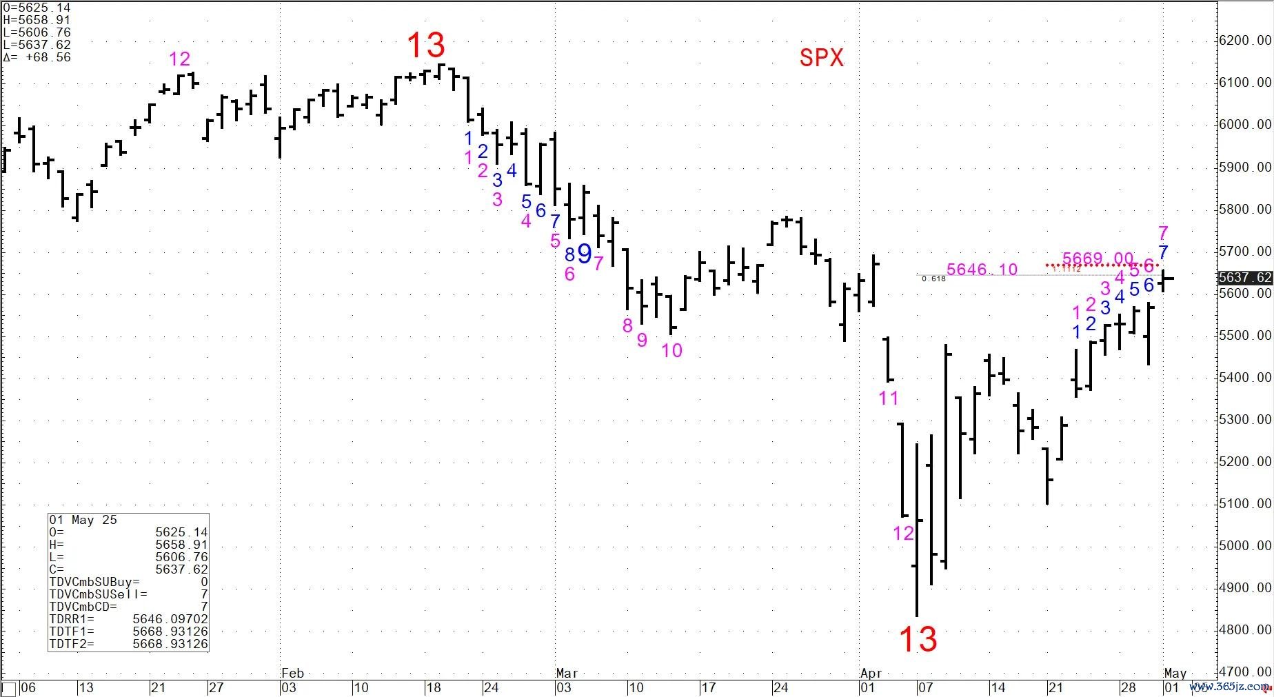 本周五标普500指数已经连续第九天上涨,是其自2004年以来持续时间最长的上涨周期。根据DeMark的最新预测,市场近期顶部可能在几天内出现,目前标普5669点的水平,可能会让买家精疲力竭: