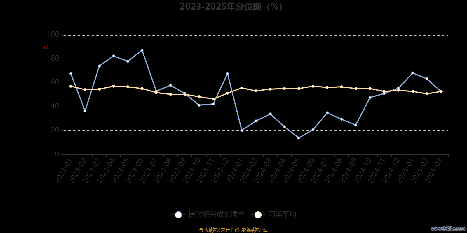 通过所选区间该基金净值增长率分位图,可以观察该基金与同类基金业绩比较情况。图为坐标原点到区间内某时点的净值增长率在同类基金中的分位数。
