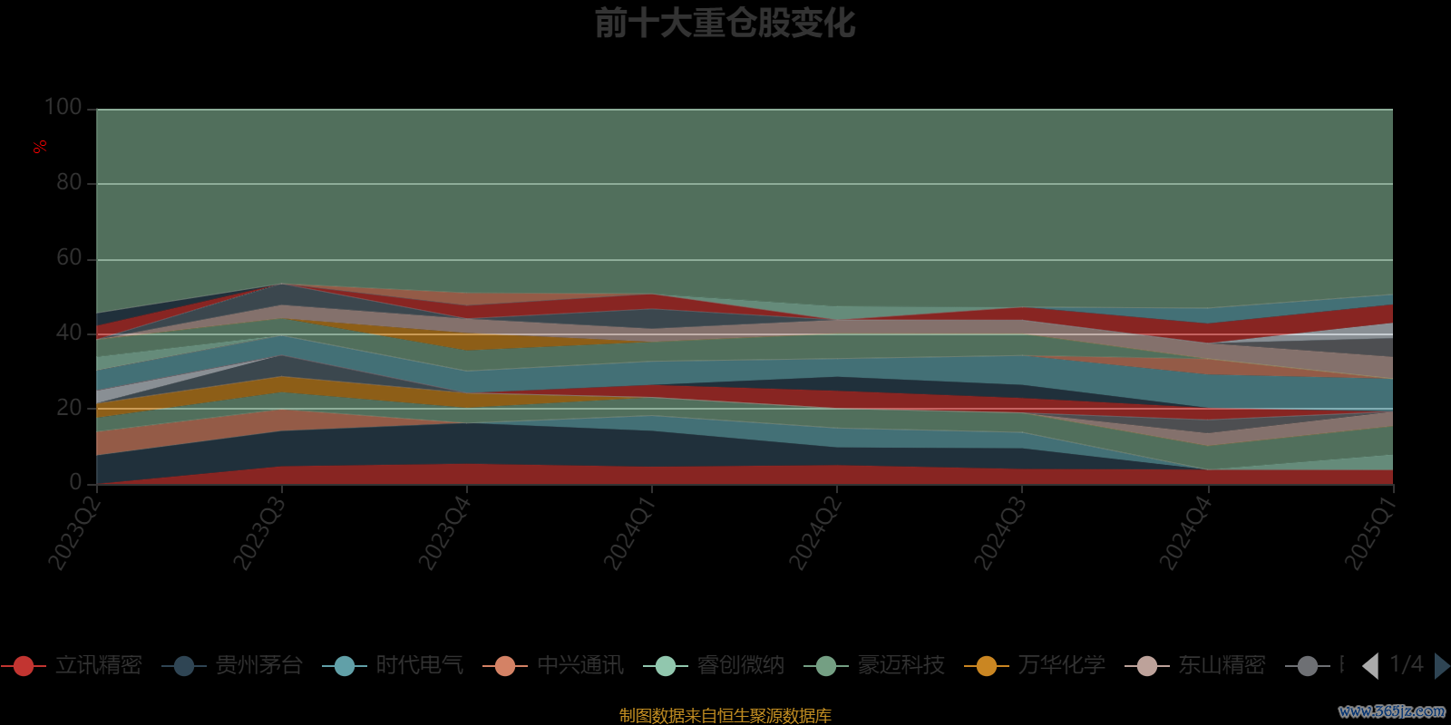 截至2025年一季度末,基金十大重仓股分别是宁德时代、豪迈科技、恒瑞医药、九号公司、紫金矿业、睿创微纳、爱玛科技、东山精密、立讯精密、电连技术。